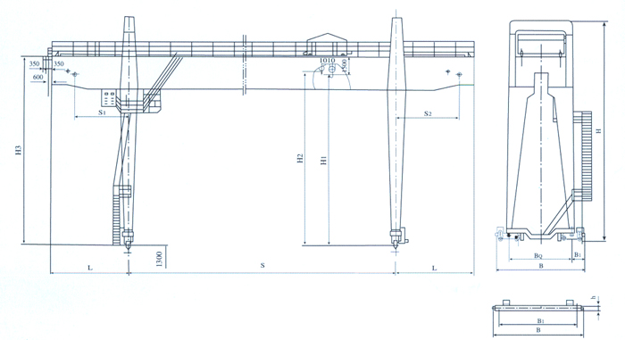 三、起重機(jī)導(dǎo)電形式分為電纜和滑線兩種,用戶可任選一種,圖表中數(shù)據(jù)以滑線為準(zhǔn)。