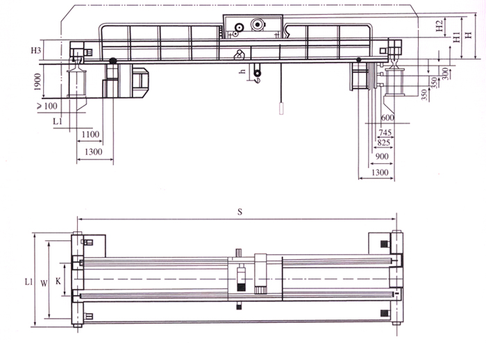 主機結構主要由主梁、橫梁、大車運行機構。小車及小車運行機構和固定在小車架上的固定式電動葫蘆所組成,是一種有軌運行的輕中型起重機,工作制度適用A3-A6,工作環境溫度為一25℃-40℃范圍內,起重機有16/3t,20/5t,一般跨度為10.5~22.5米,電氣設備操縱形式有無線、有線地面操縱和操縱室操縱。